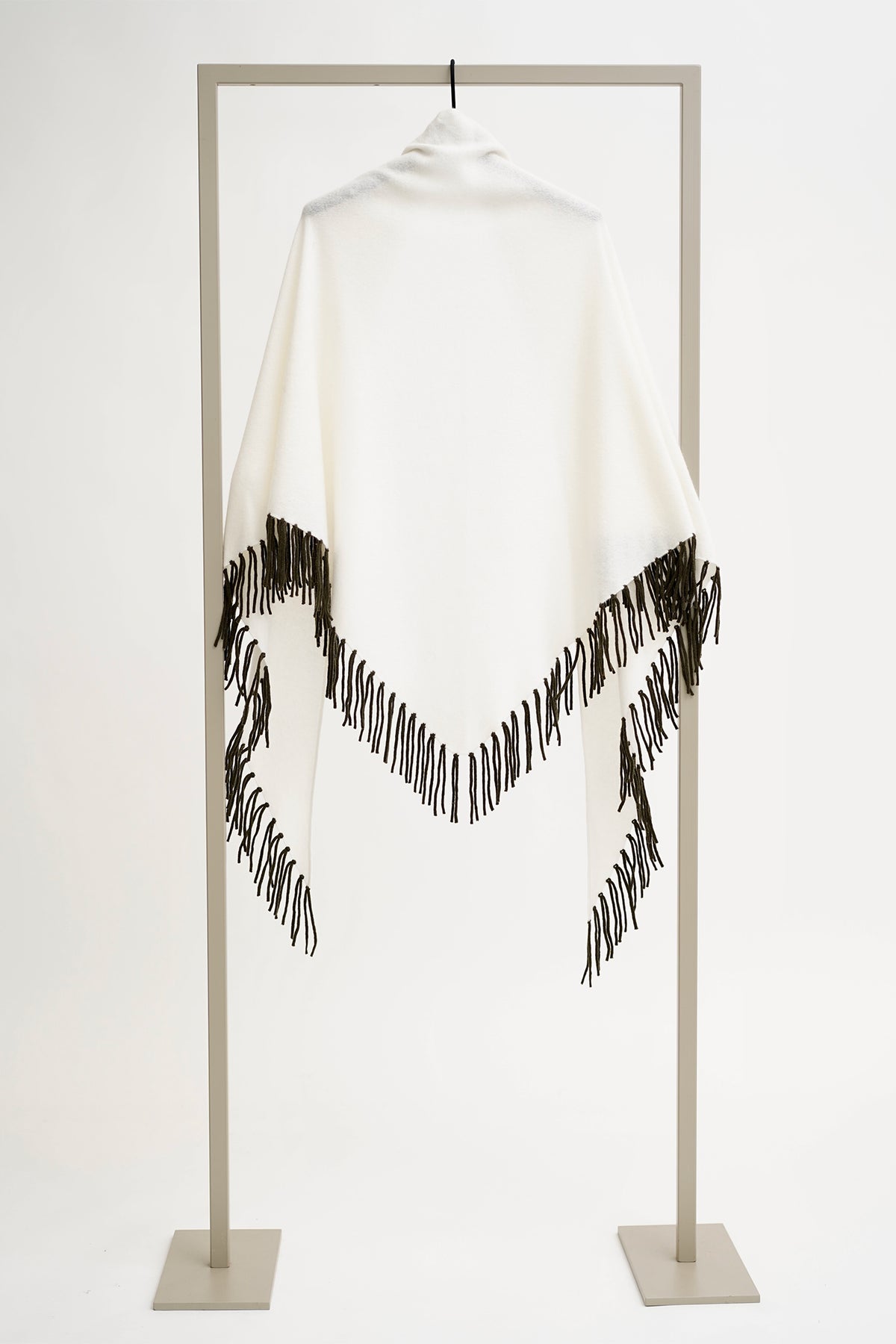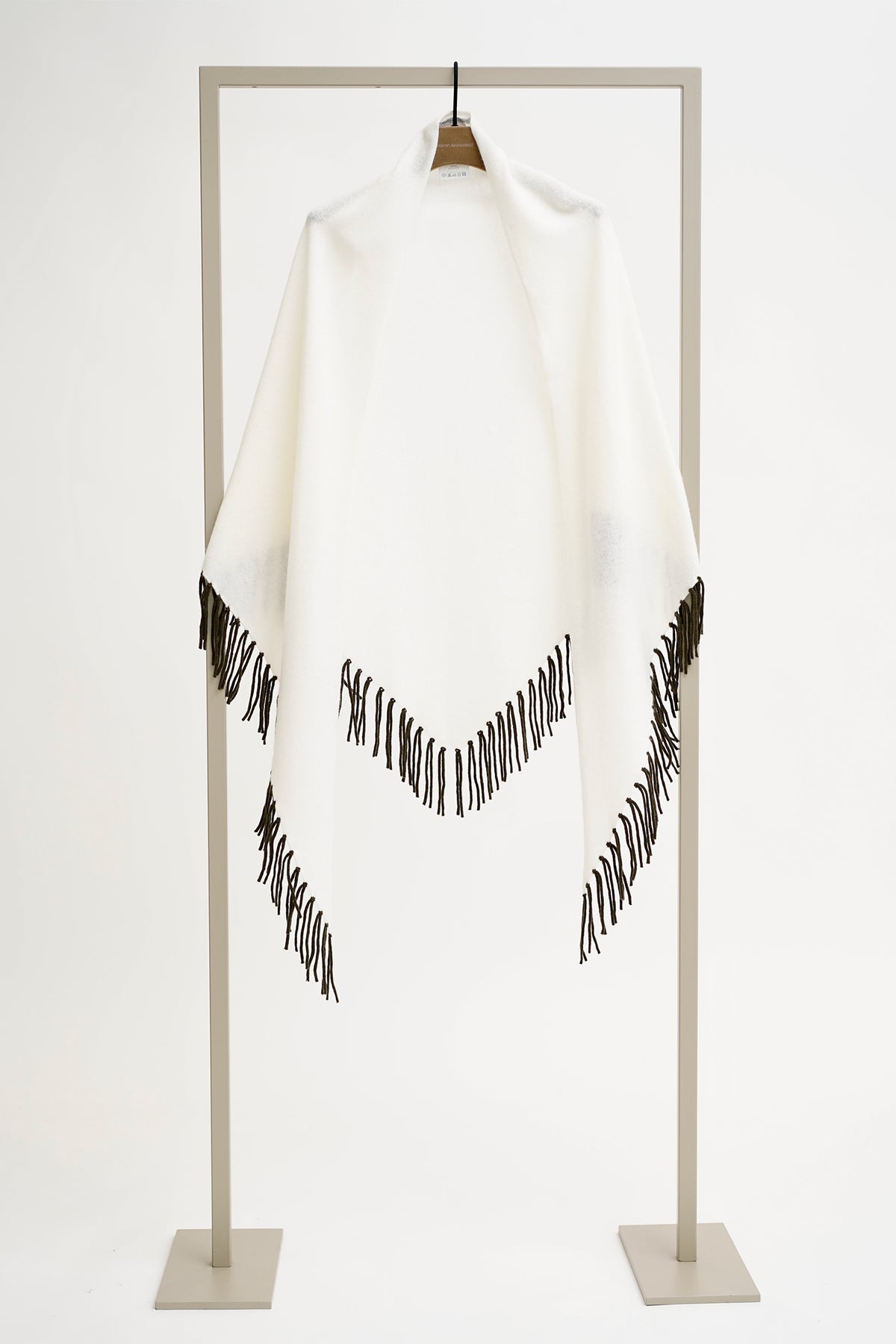 A refined layering piece with natural warmth and tonal elegance, the Herzen's Angelegenheit 25253-5000 Ermine Cream Teak Brown Cashmere Mix Shawl blends creamy softness with earthy depth. Its triangular silhouette and fringed edges offer relaxed sophistication, ideal for transitional styling.
