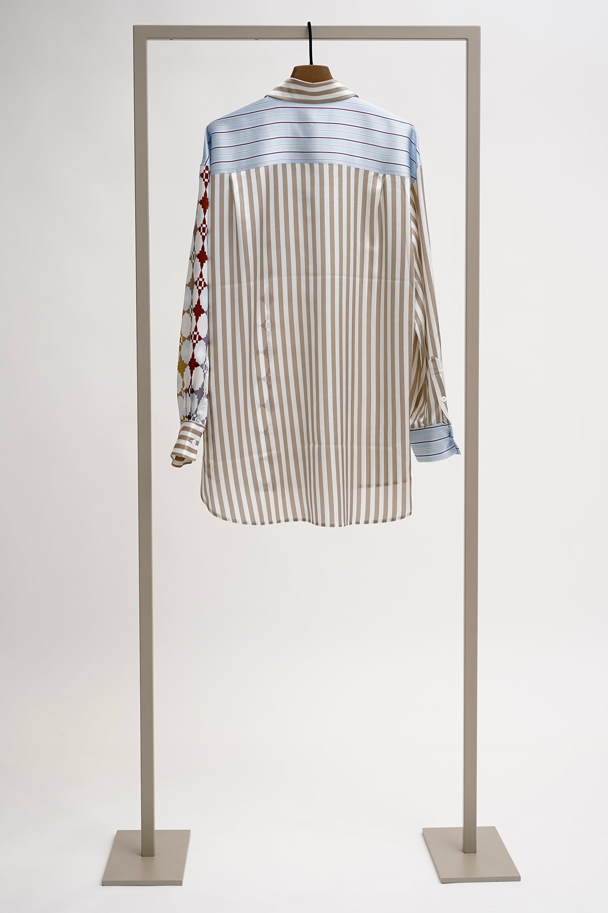Herzen 25253-6181 Roasted Cashew Striped Blouse is a silk statement shirt with asymmetric pattern blocking—ideal for adding visual interest to tailored edits or elevating off-duty looks. Designed with a relaxed silhouette and eclectic print mix, it balances structure with playful contrast.