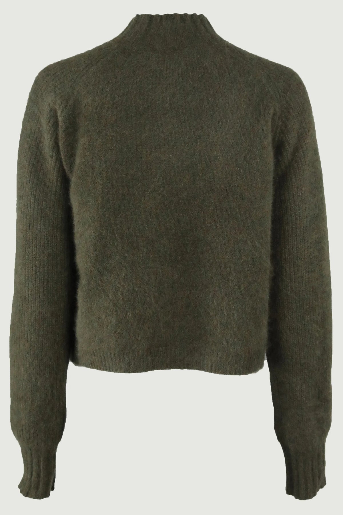• Army green melange fuzzy knit