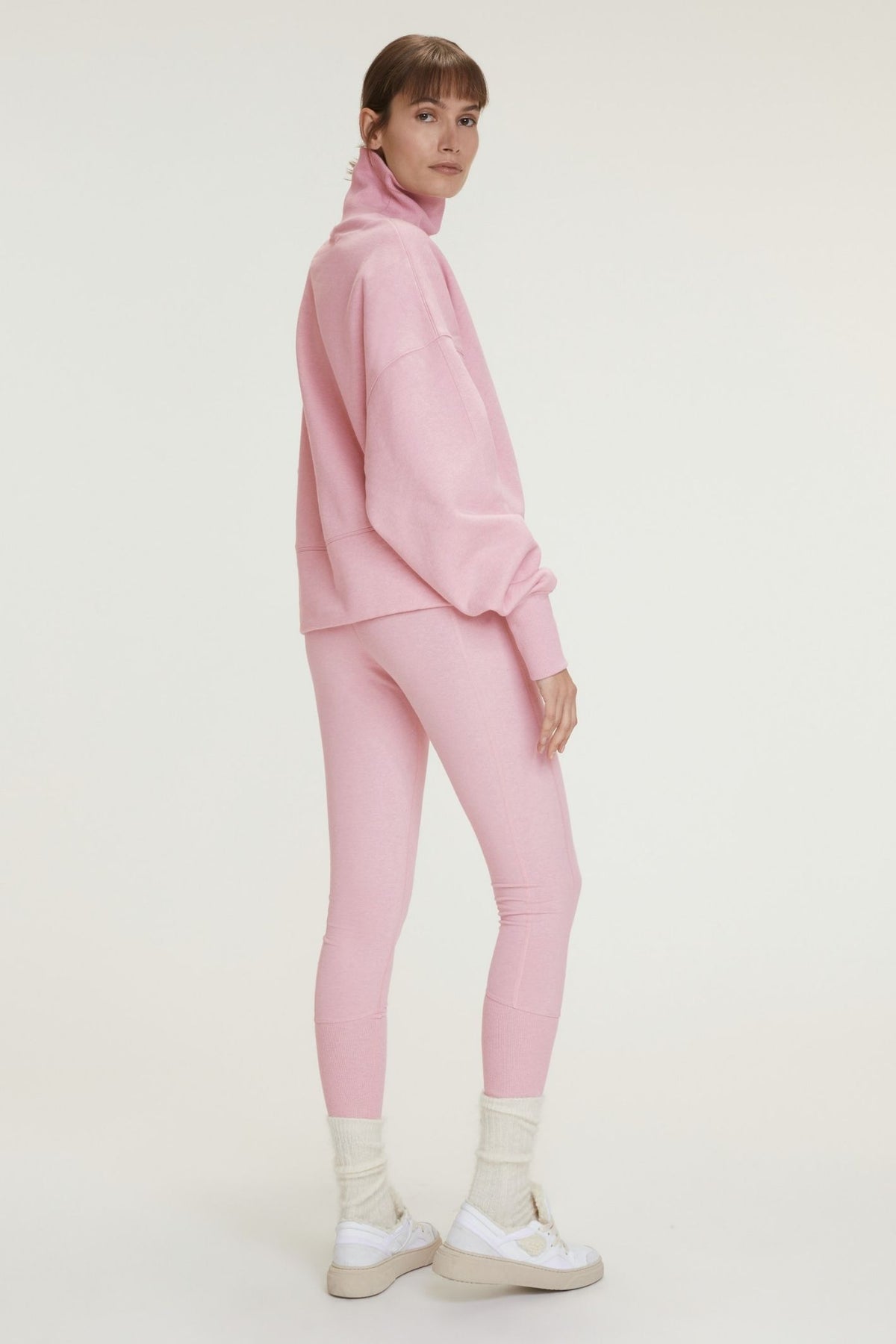 Soft pink leggings made of cotton with elastane, gives them a soft texture. Ripped waistband makes them extremely comfortable to wear, great with over size sweaters and shirts.