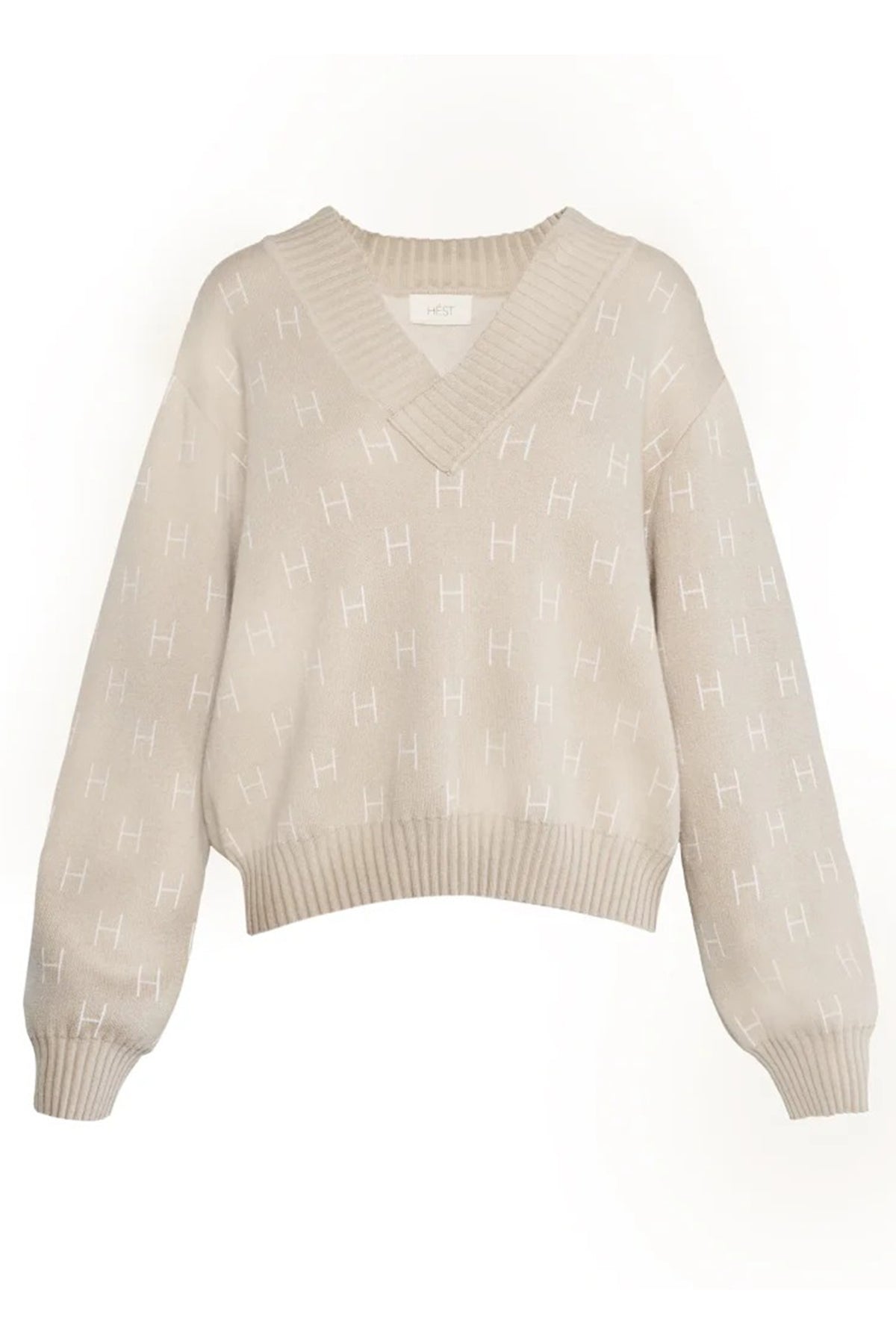 A wardrobe staple with understated charm, the Hést 2510120221 Linda Beige V-Neck Cotton Mix Sweater blends softness, structure and Scandinavian simplicity. Crafted from a luxe blend of 95% cotton and 5% cashmere, it features a flattering V-neckline and all-over white “H” logo motif for subtle brand definition.