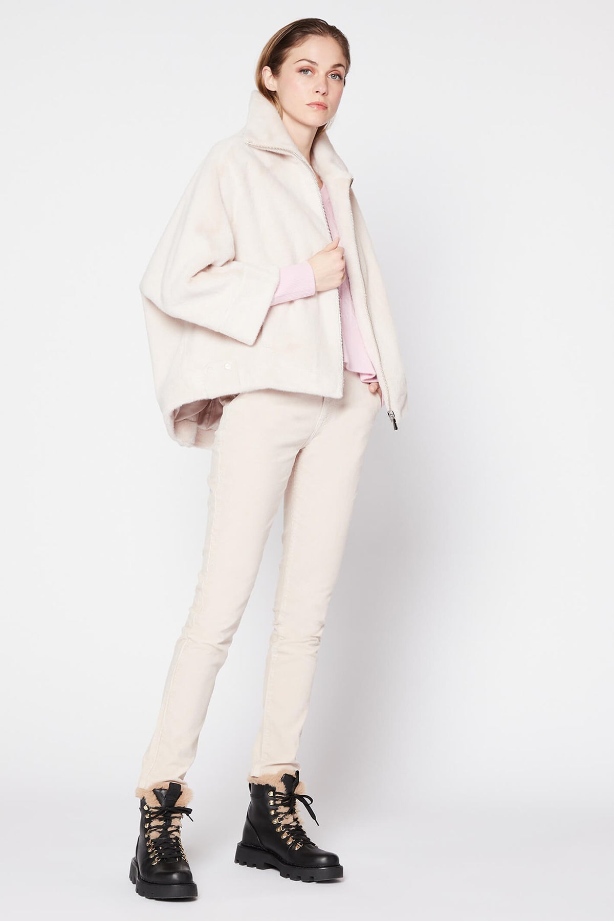 This loose fit mid-length coat is a must have this season. It has a fluffy texture, high neck, zip fastening, dropped armholes and is slightly longer length at the back.