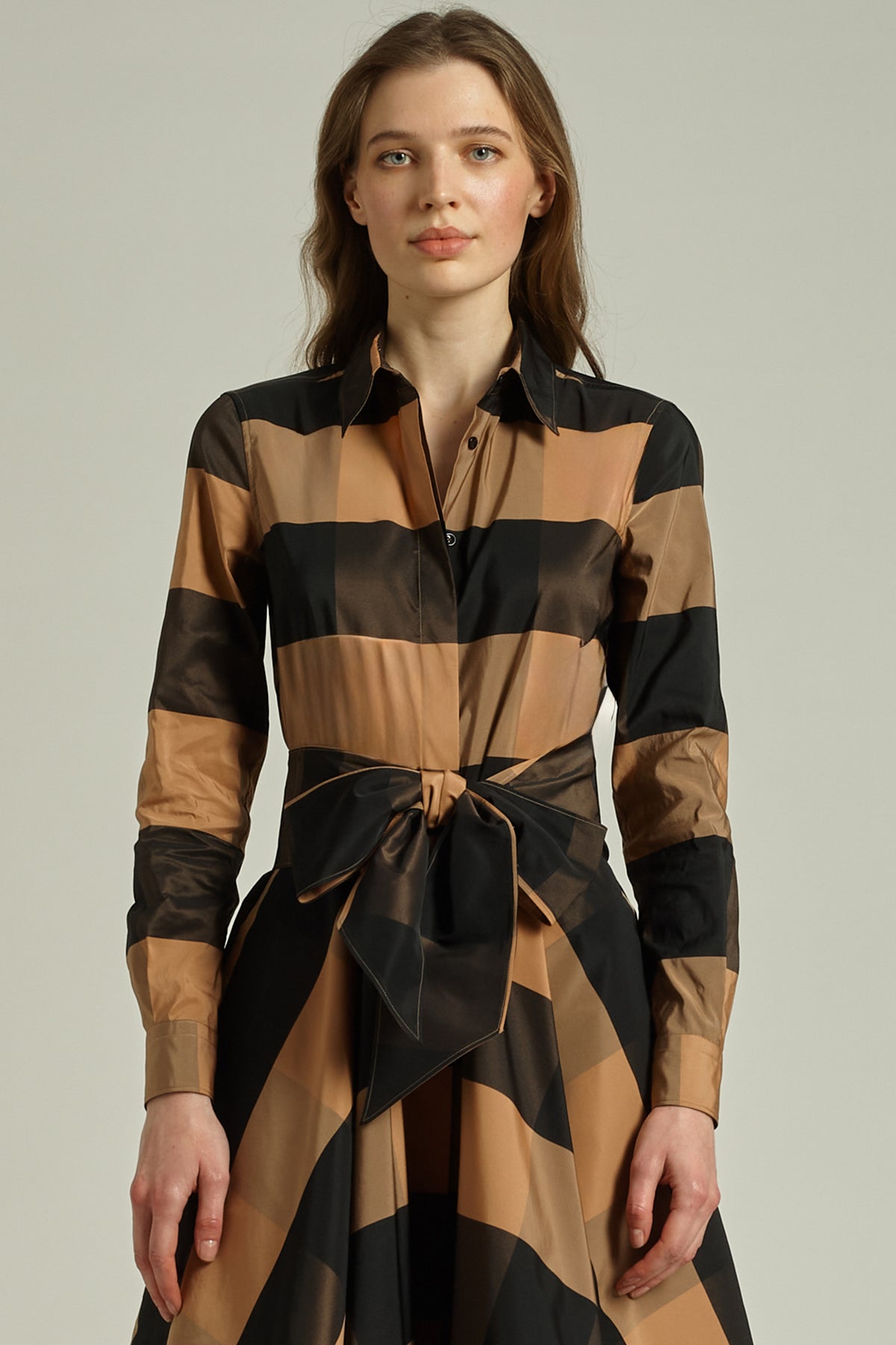 Sarah Roka S1Q1492 Mariasole85 Camel Black Check Midi Dress